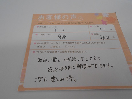 本日もお忙しい中、ご来店頂きまして 誠にありがとうございます(*^^)v 効果を実感して頂けているみたいで 光栄です❤ またのお越しを心からお待ちしております!