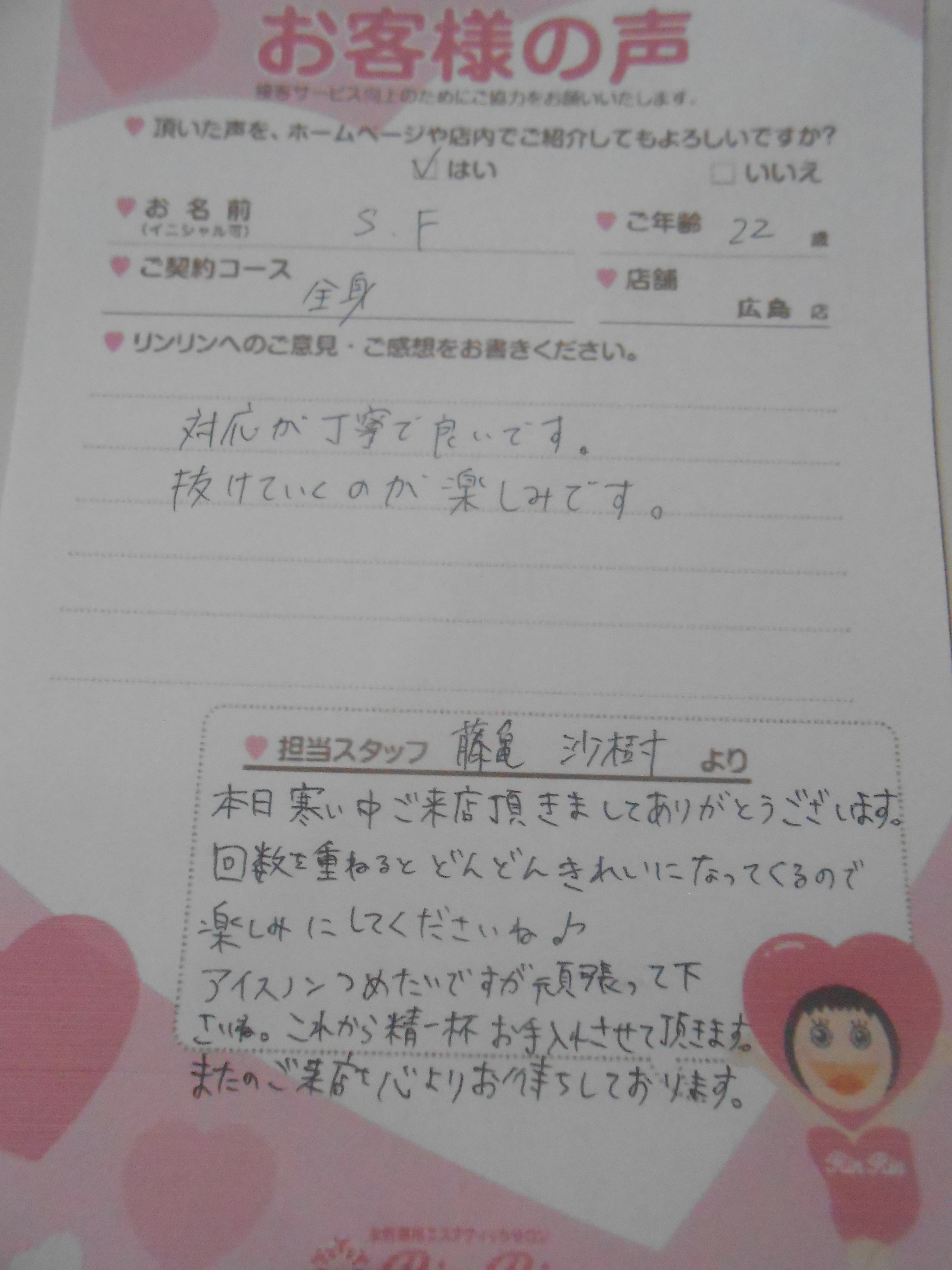 2016年4月22日のお客様の声