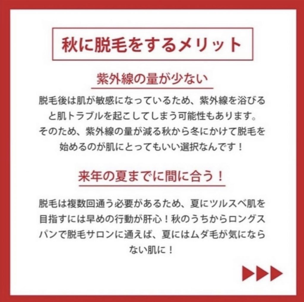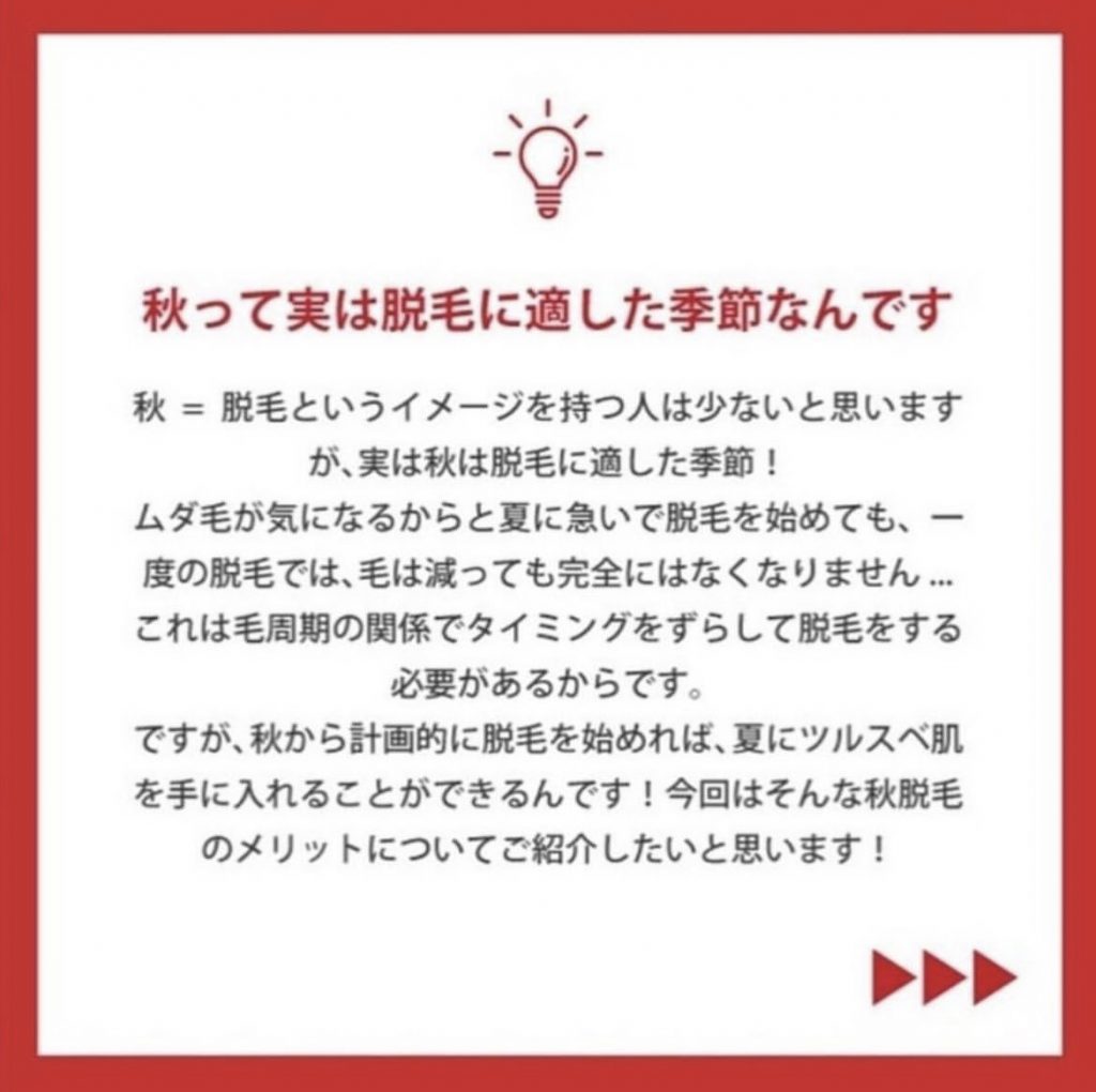 脱毛をするなら秋がベスト☝🏼って知ってましたか❓👀✨