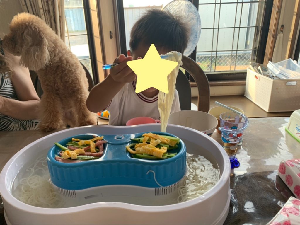 家の中で流しそうめん)^o^(