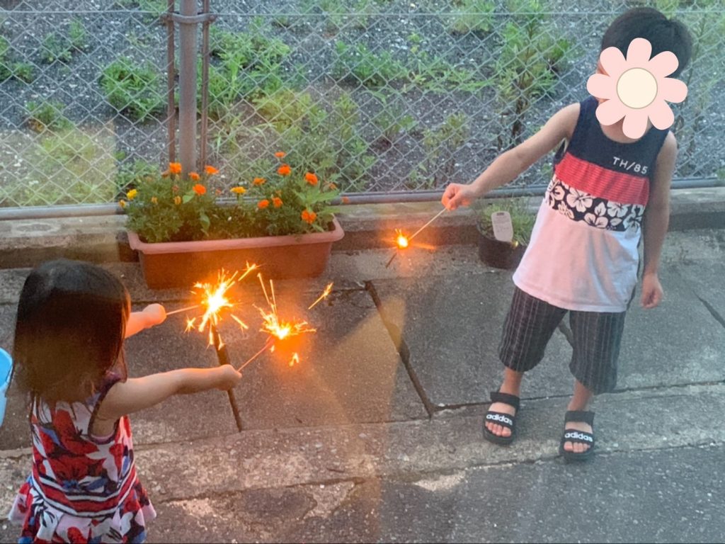 今年は、花火大会がないのでお家花火しました)^o^(