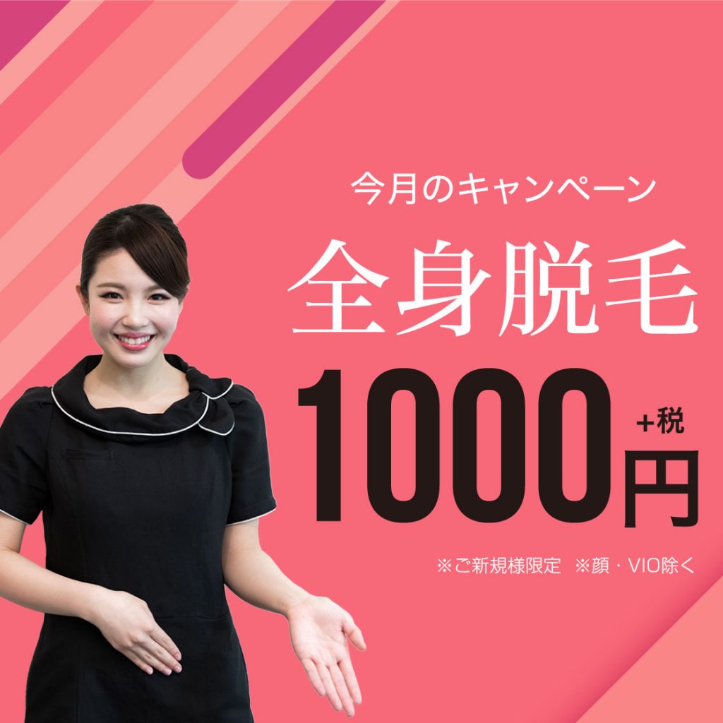 大人気全身脱毛!!が1回1000円(税抜)
