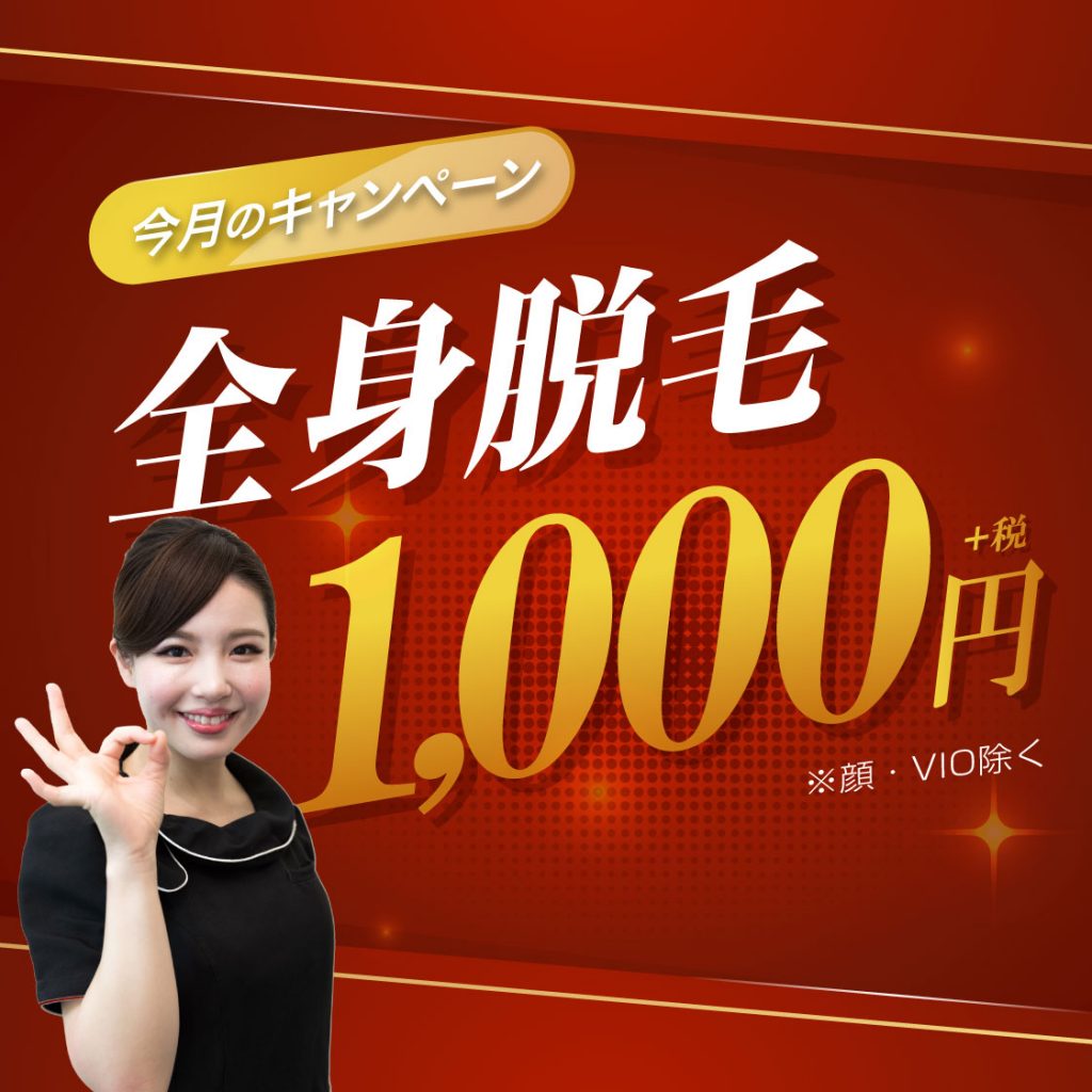 なんと大人気の全身脱毛が1回¥1000