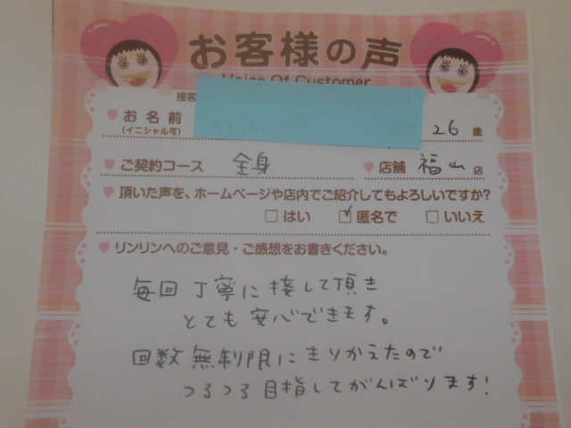 いつも楽しく話しながらきれいにしてもらって本当にありがとうございます♡♡