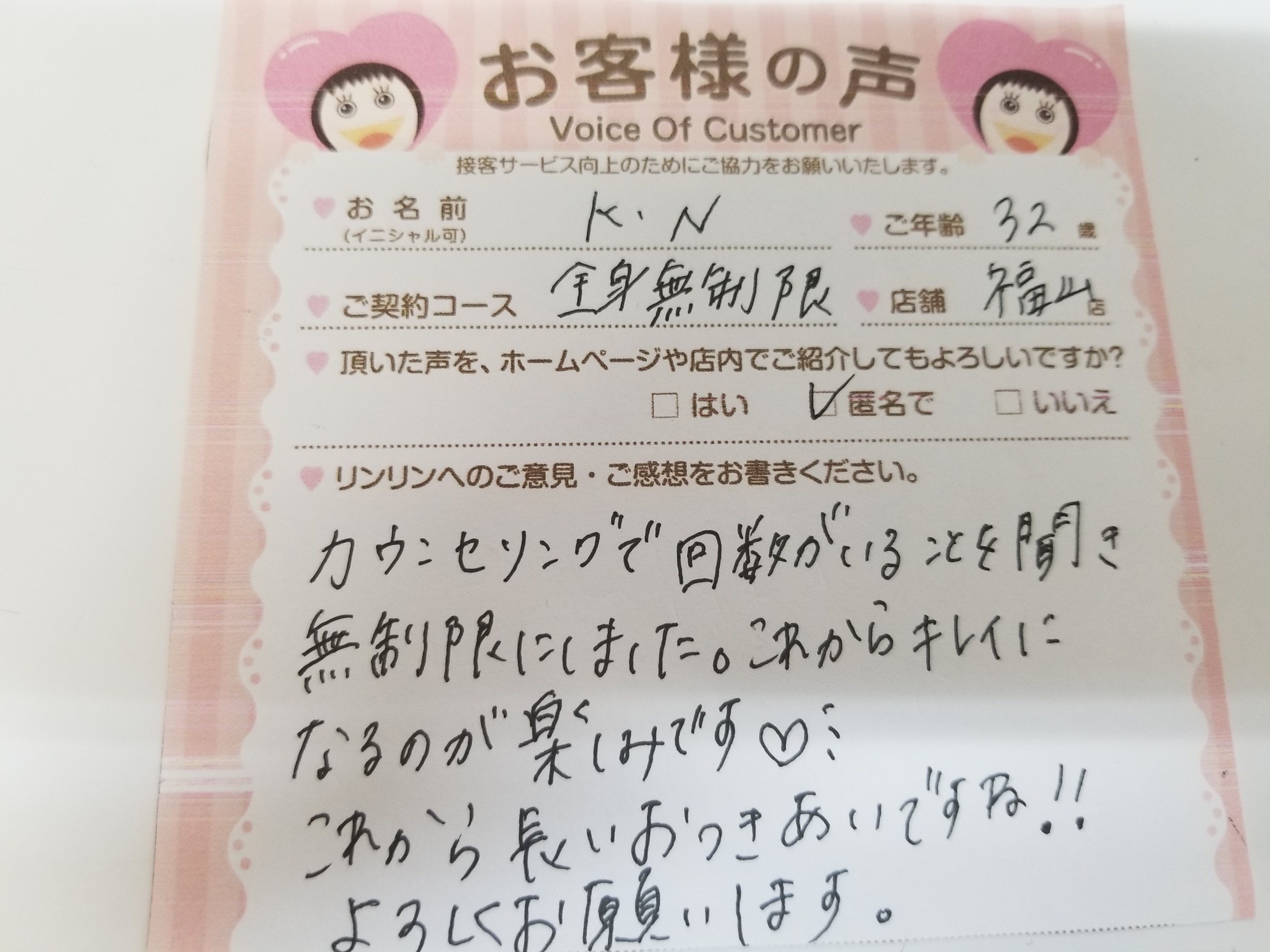 いつもRINRIN福山店をご利用いただきありがとうございます。