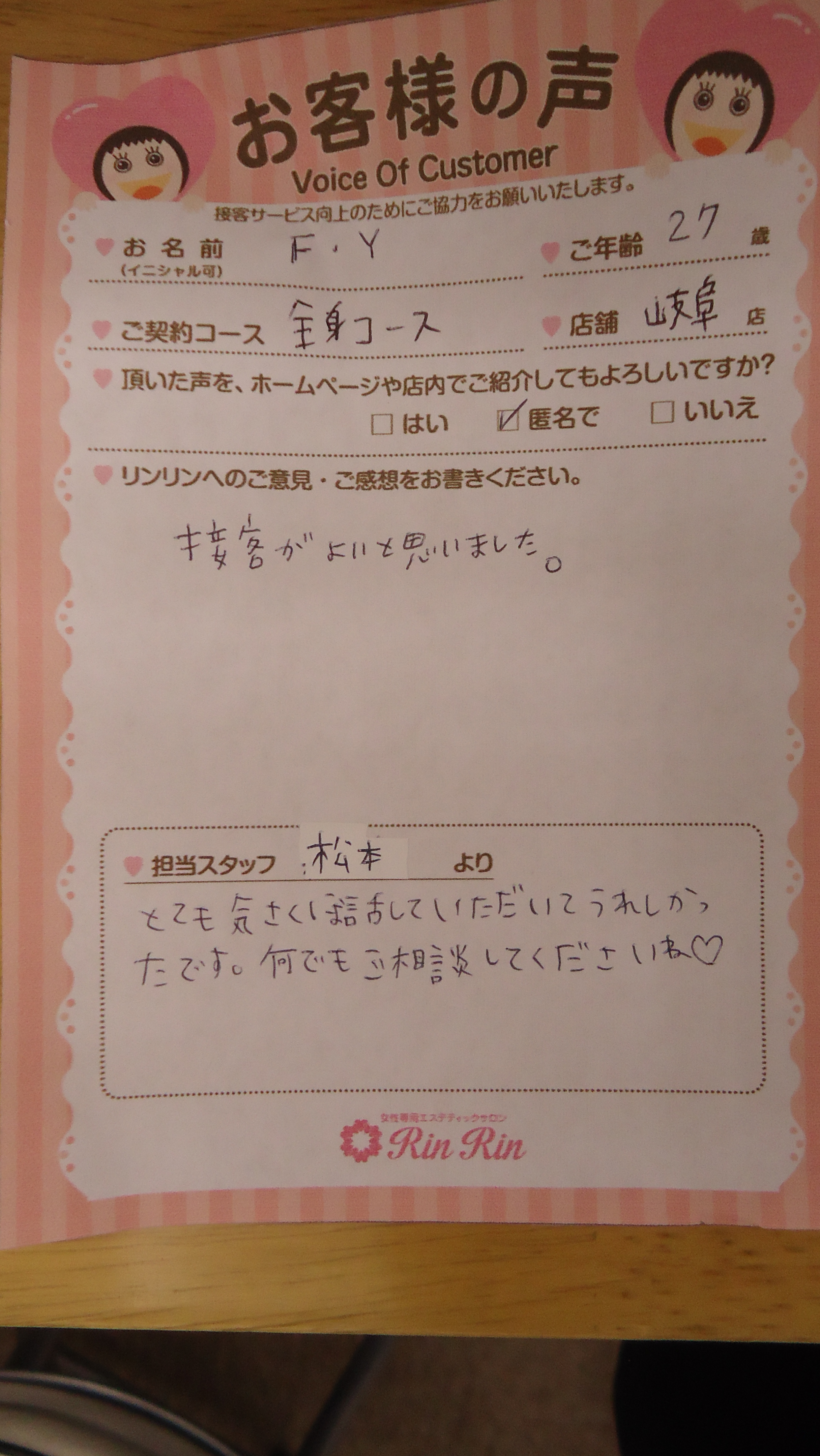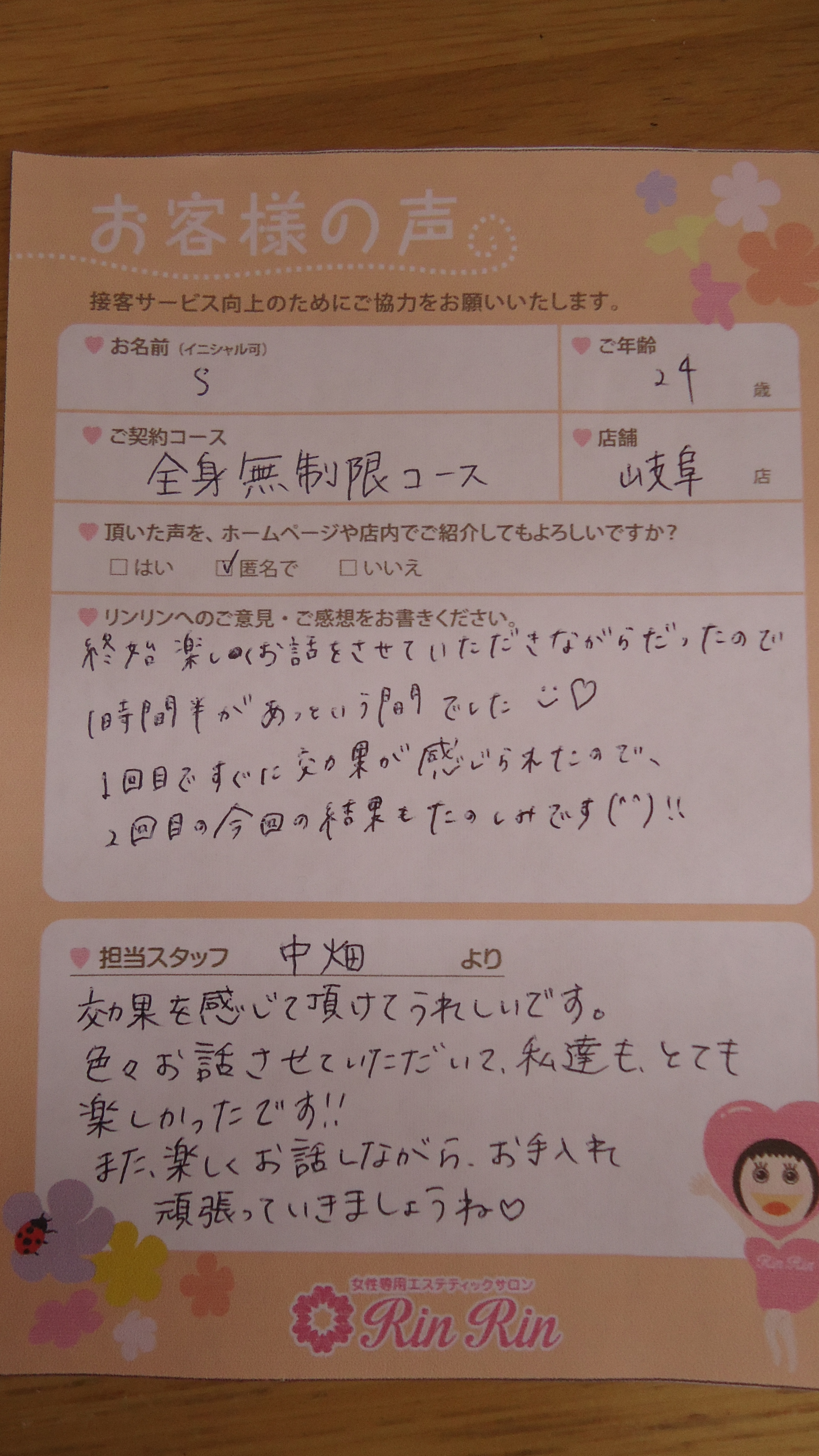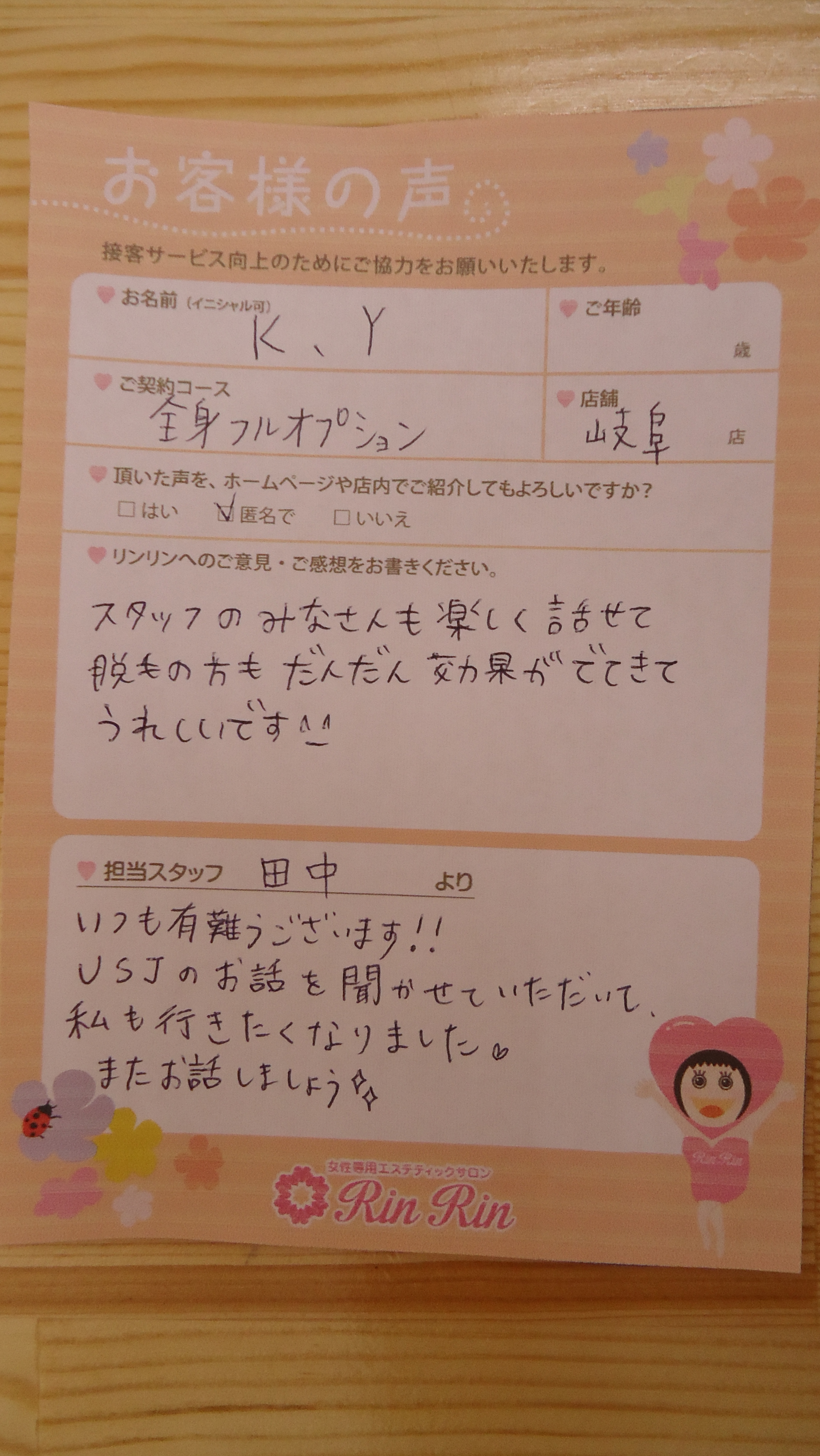効果を感じて頂けて嬉しいです。 色々お話しさせて頂いて、私たちもとても楽しかったです! また、楽しくお話ししながら、お手入れ頑張っていきましょうね♡