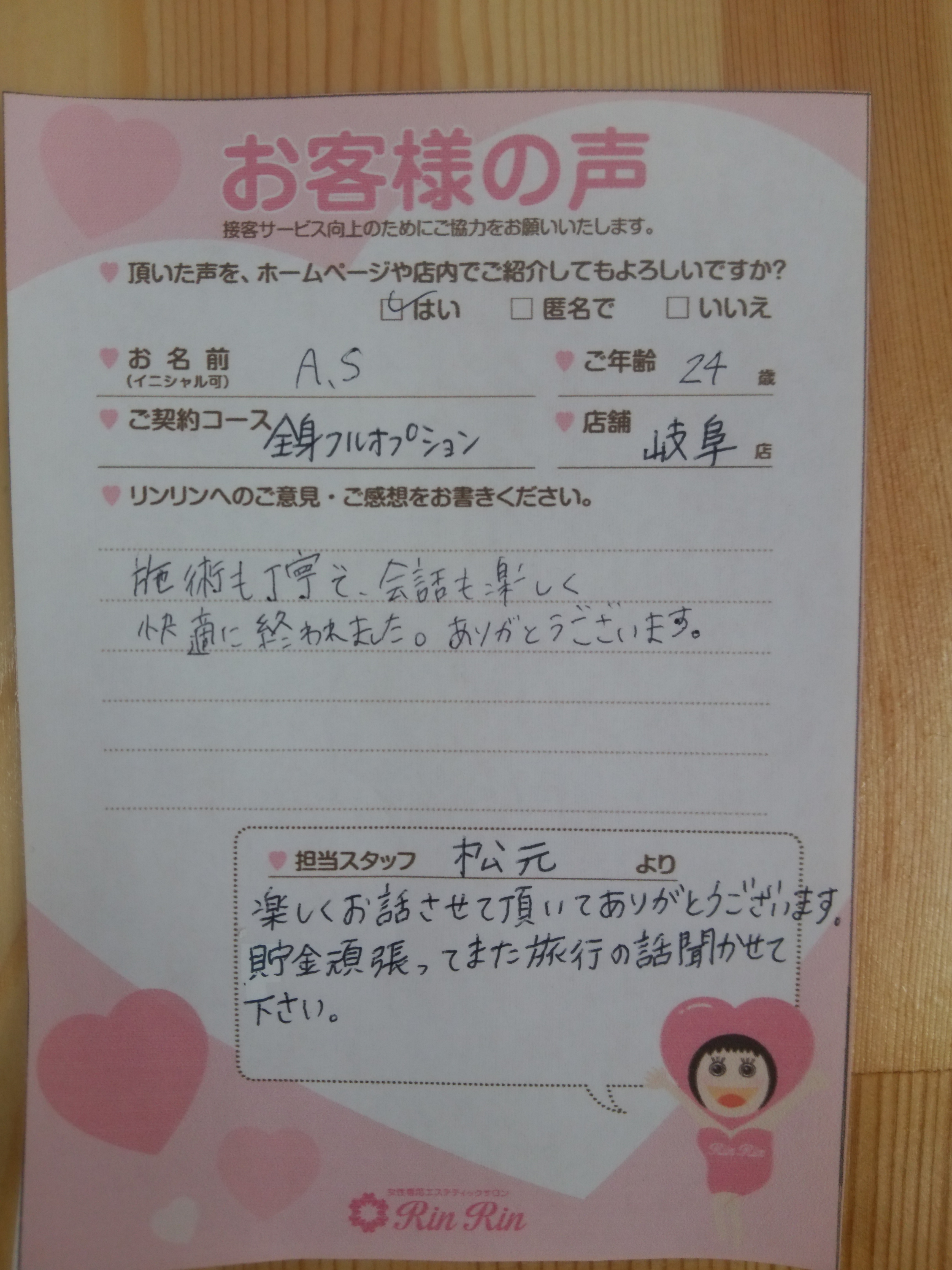 楽しくお話しさせて頂いて、ありがとうございます。 貯金頑張ってまた旅行の話聞かせて下さい。