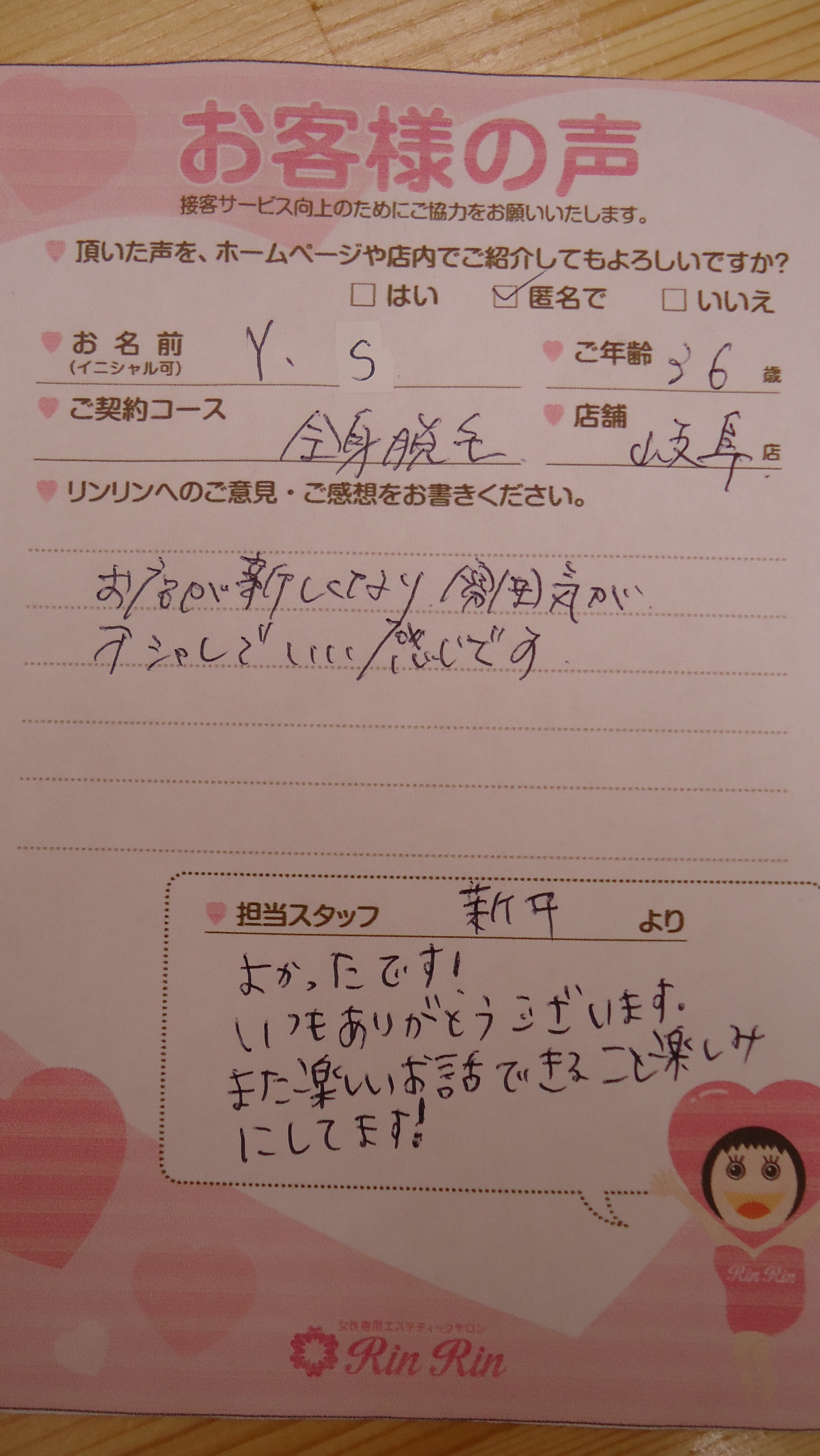| お名前 | Y.S様 |