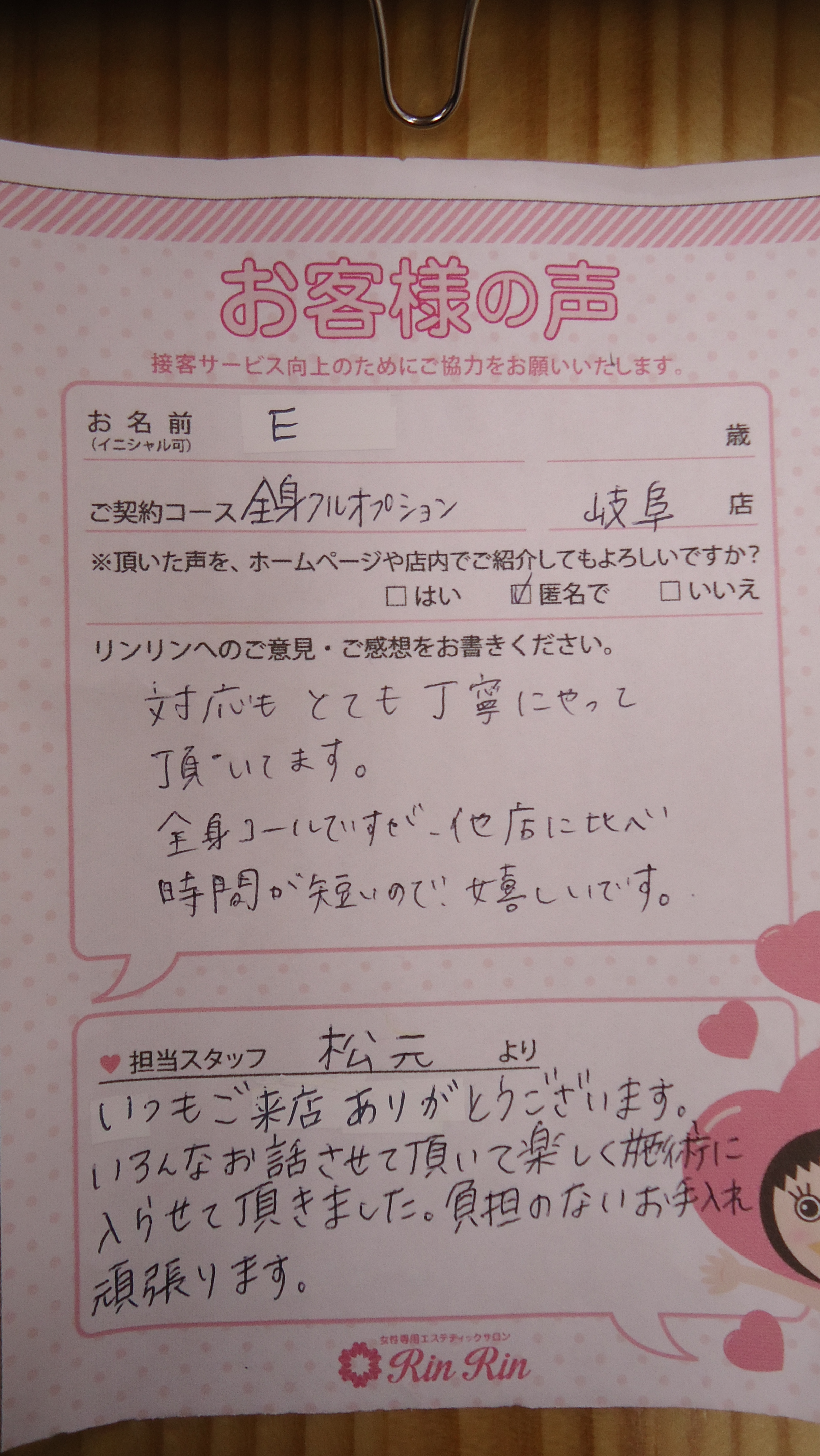 | 店舗名 | RINRIN岐阜店 |