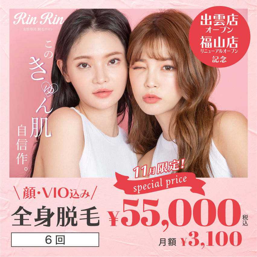 少しでもムダ毛が気になるなら、是非リンリンへお越しくださいませ🤗