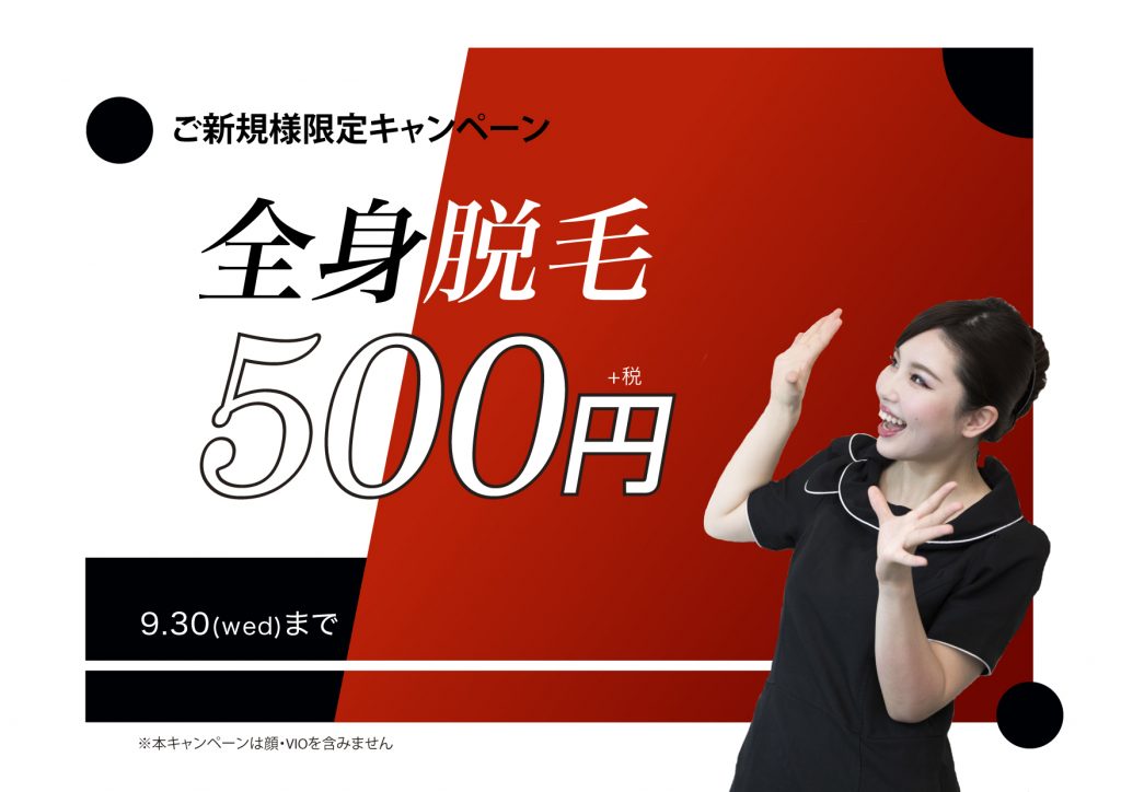 9月のお得なキャンペーン実施中です!一番と言ってもいいほど気になって剃ることが多いのは脇だと思います!脇から始める方も多いです!そんな脇のキャンペーンもやっておりますので気になった方はお気軽にお問い合わせください(^^)/