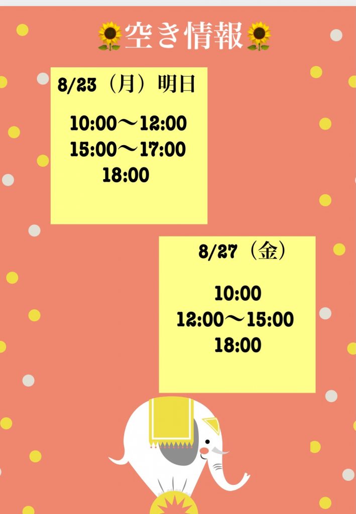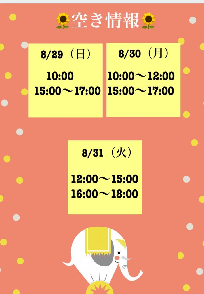 8月も残りわずかとなりました!今月の空き情報をお知らせいたします♥