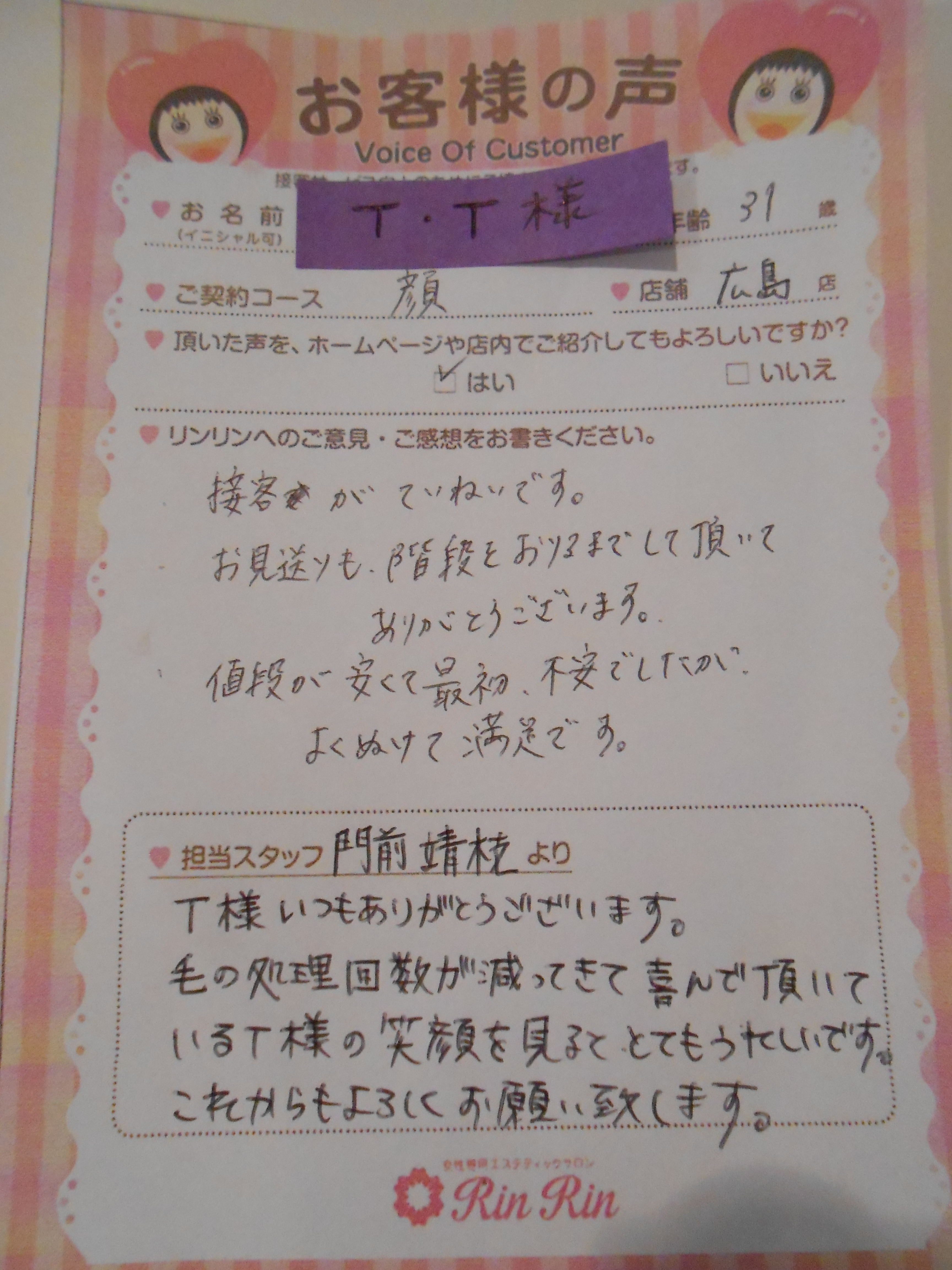 リンリン広島店に通って 本当に良かったです。