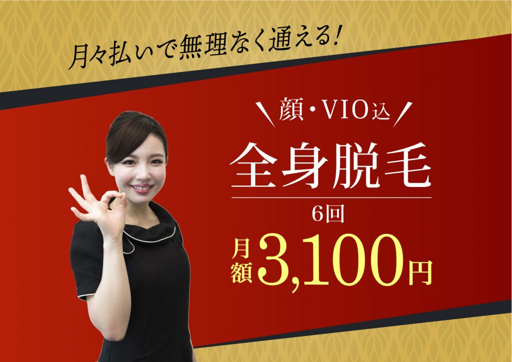 全身脱毛(顔・VIO込)6回 月額3100円