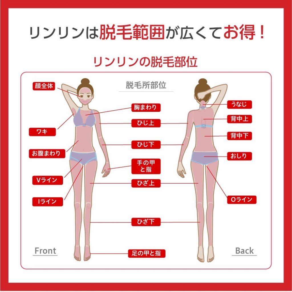 リンリンの脱毛パーツは1パーツそれそれが広範囲なので