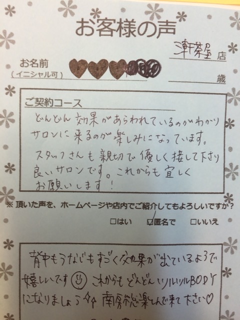 背中もうなじもすごく効果が出ているようで嬉しいです(●^o^●) これからもどんどんつるつるBODYになりましょう☆ 南房総楽しんでください❤