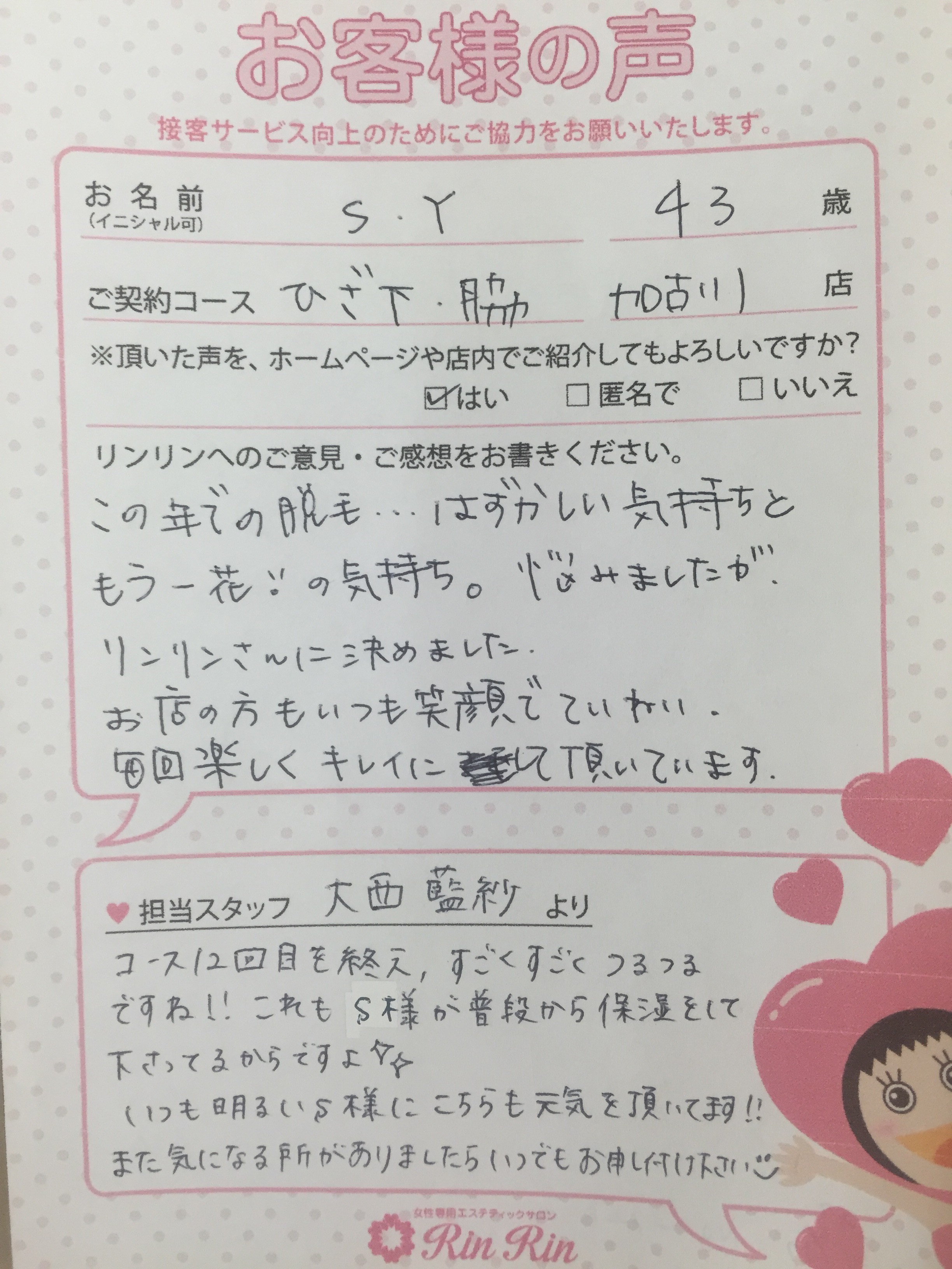 S・Y様 本日もご来店ありがとうございました!! またドラマのお話して下さい❤