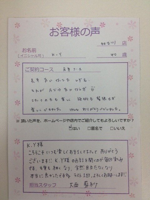 効果が出てきて嬉しいです\(^o^)/ 次回の御来店も楽しみにしております♪