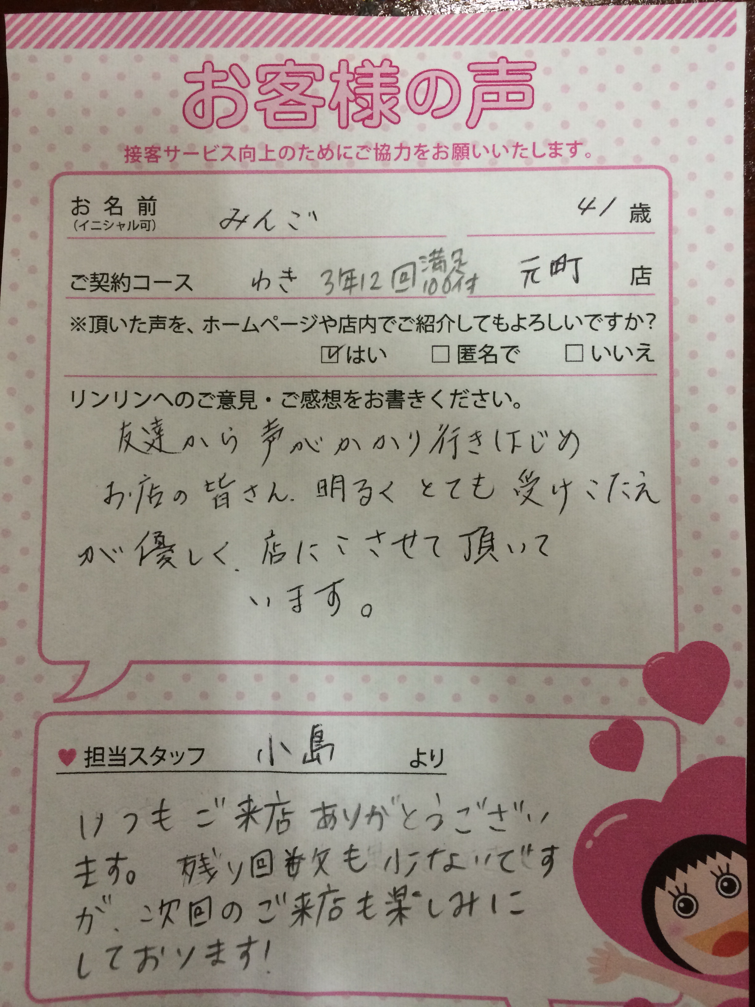 | お名前 | みんご様 |