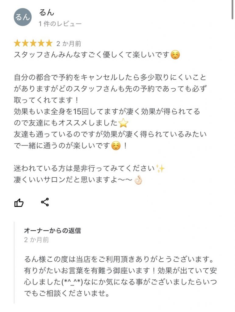 本日で12回目のお手入れだったk様からお客様のお声を頂きました★