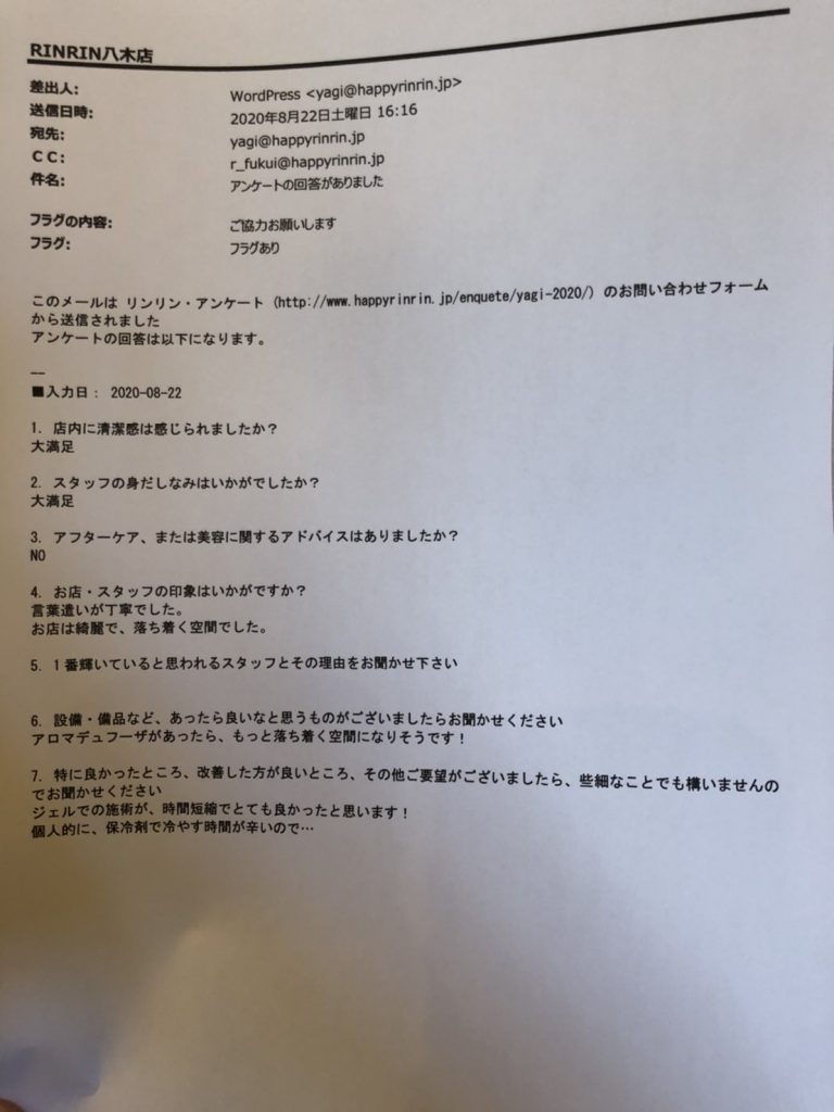 お客様アンケートいつも皆様ありがとう御座います。
