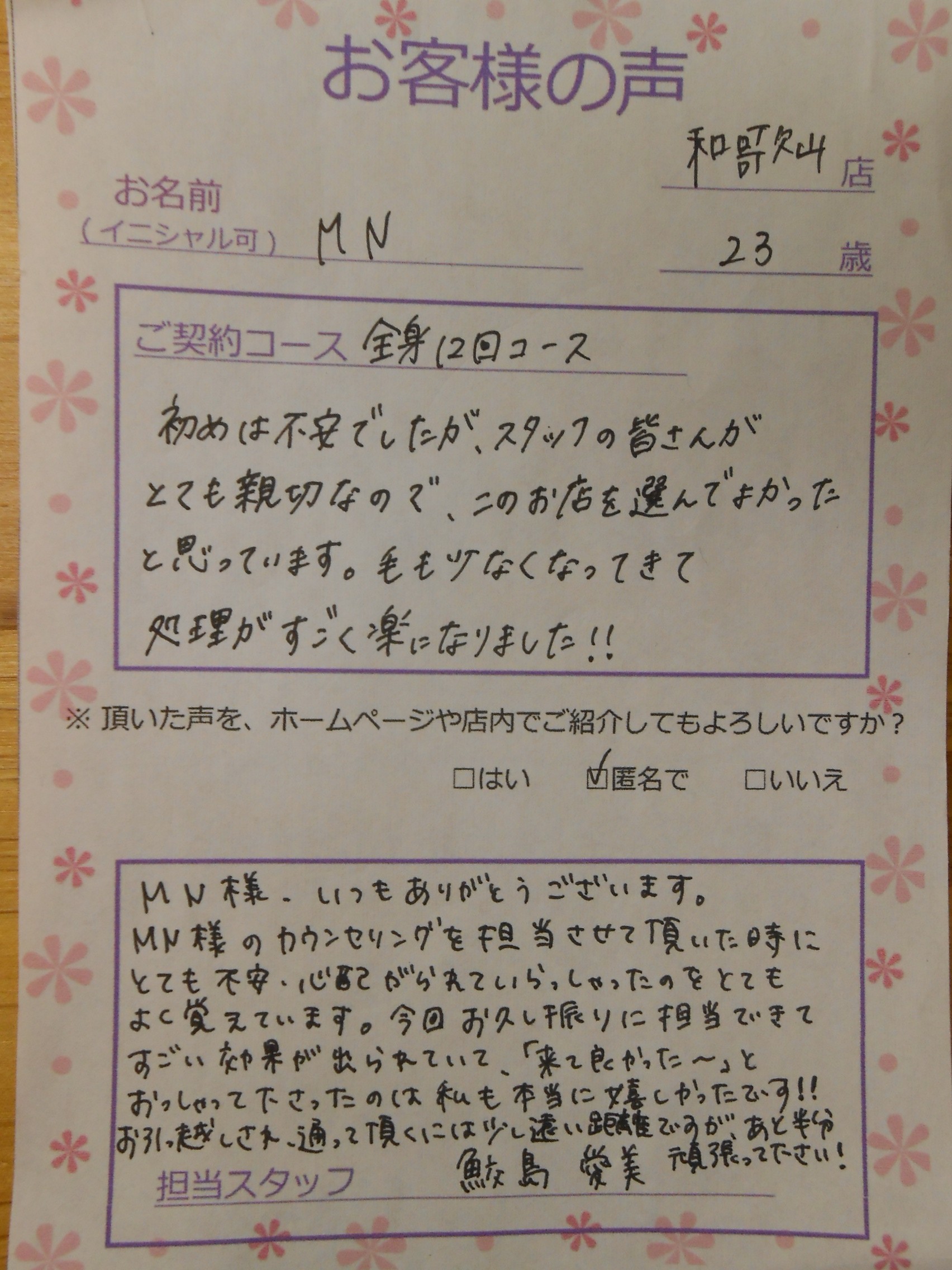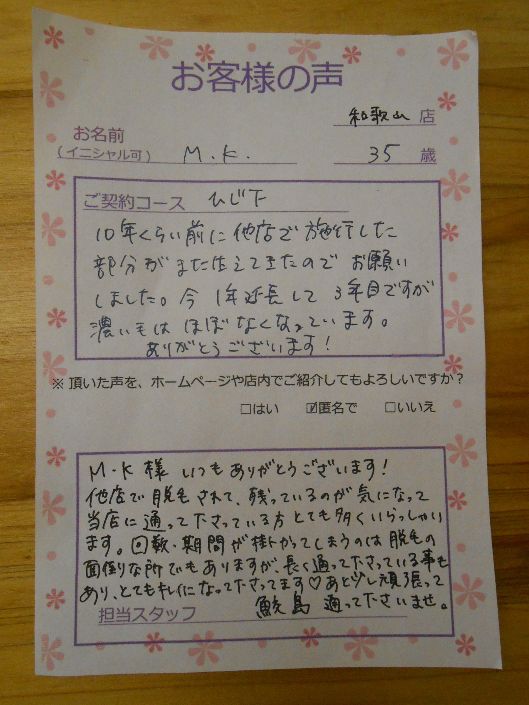 s.k様には長らく通って頂き、お友達様もたくさんご紹介して頂けて