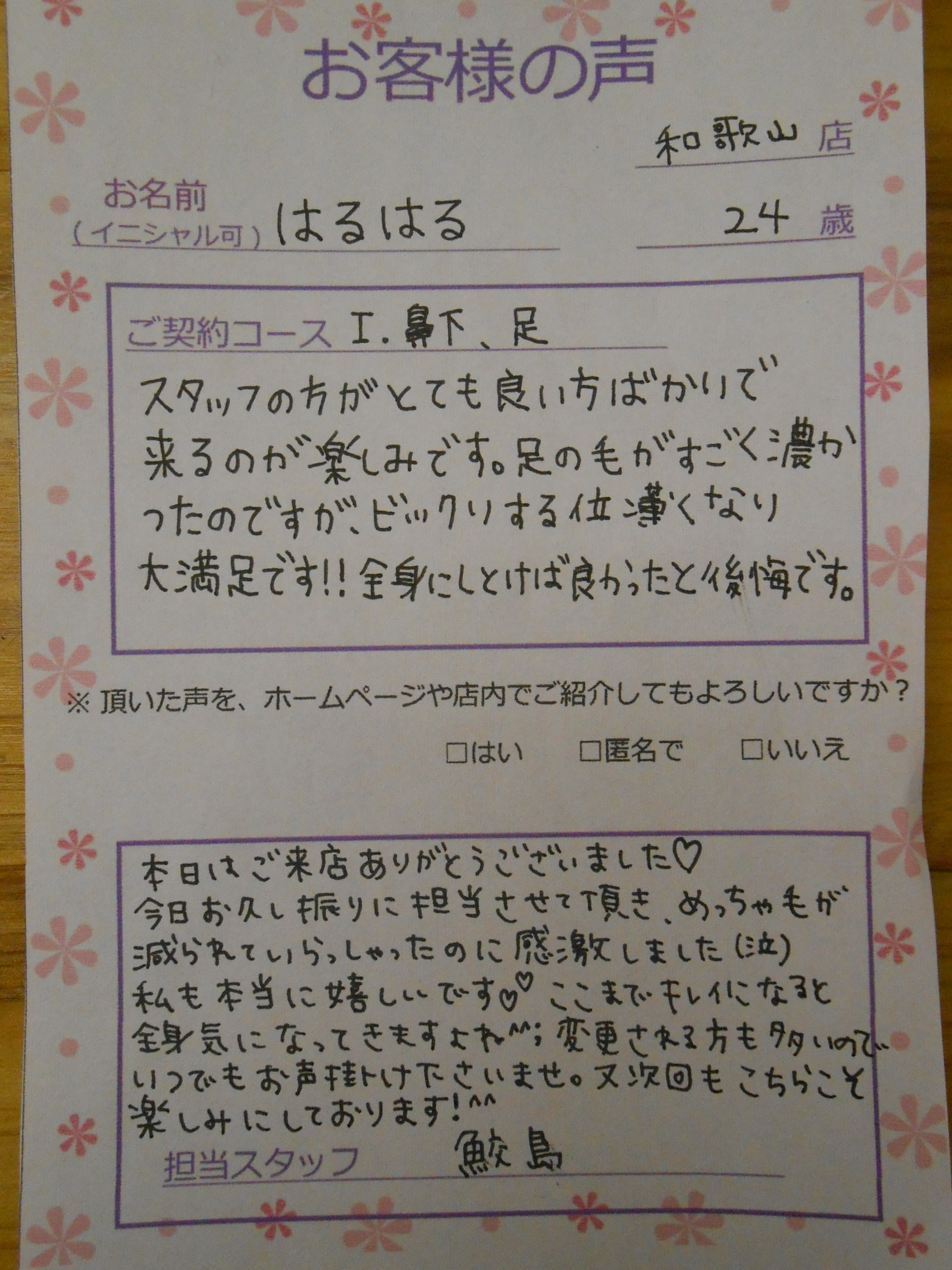 スタッフ一同はs.k様にお会いできるのを毎回とても楽しみにしております(*^_^*)