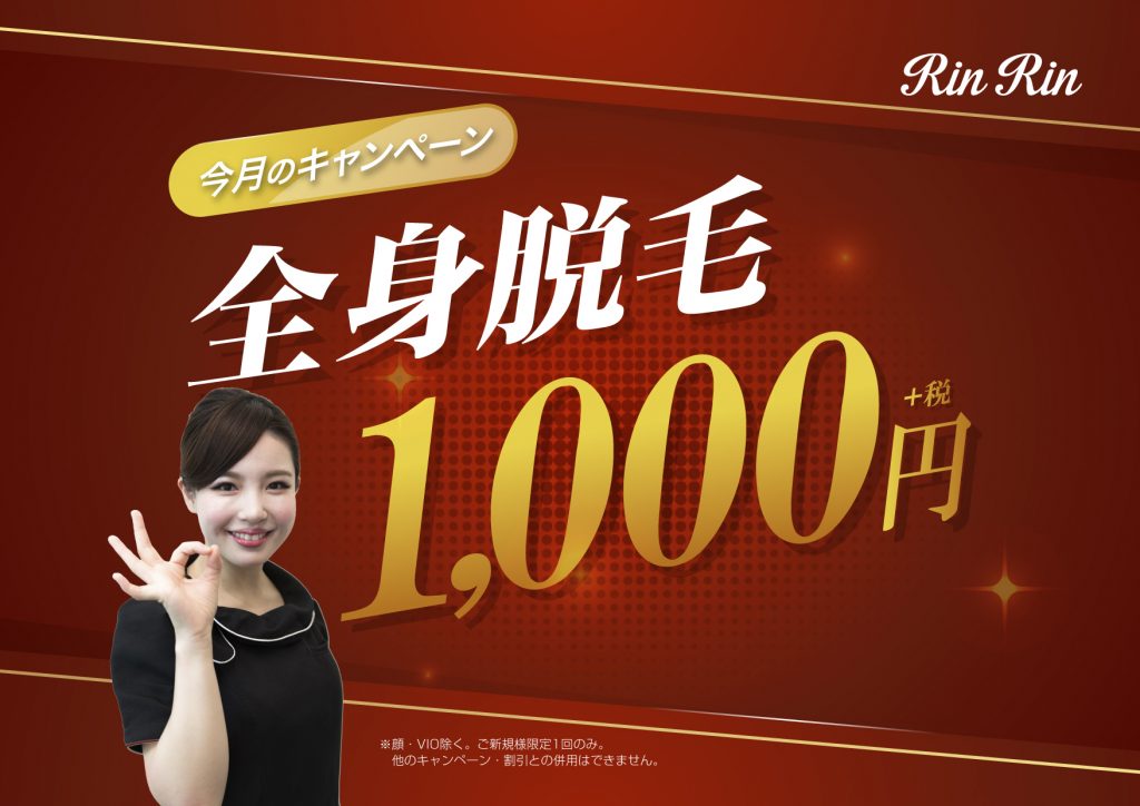 全身脱毛が1回1000円❤