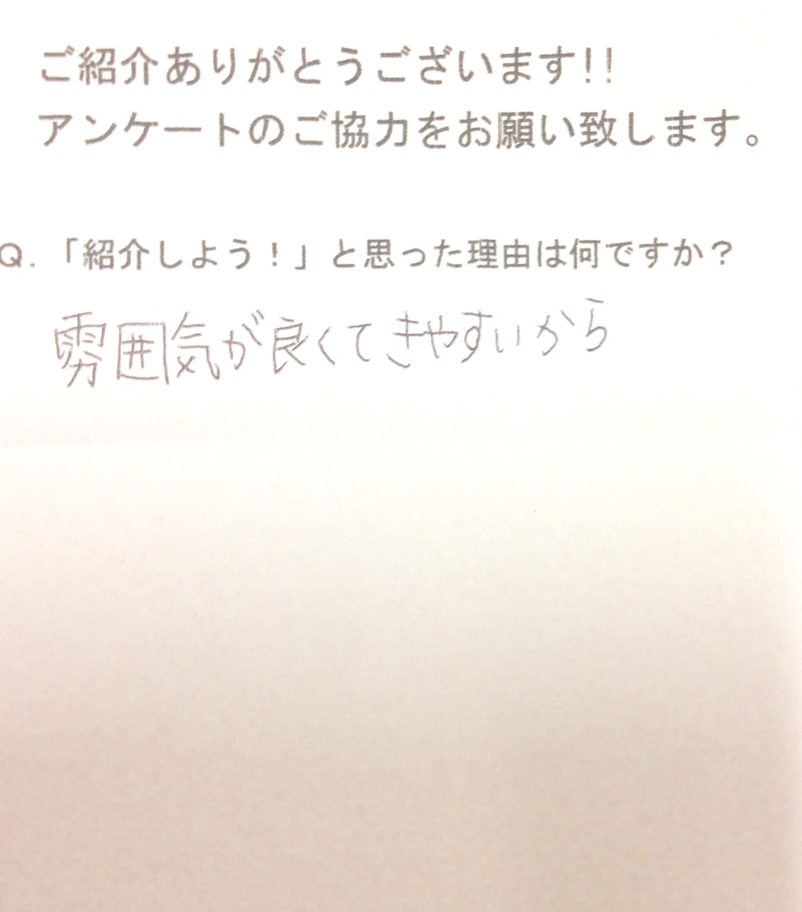 M様 ご紹介ありがとうございました。(^o^) お友達の方も安心して通って頂ける様に頑張ります♡ 次回のご来店も心よりお待ちしております。