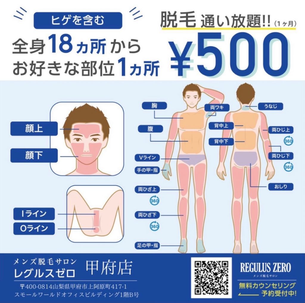 先日、山梨県にメンズ脱毛サロンがオープンしました!