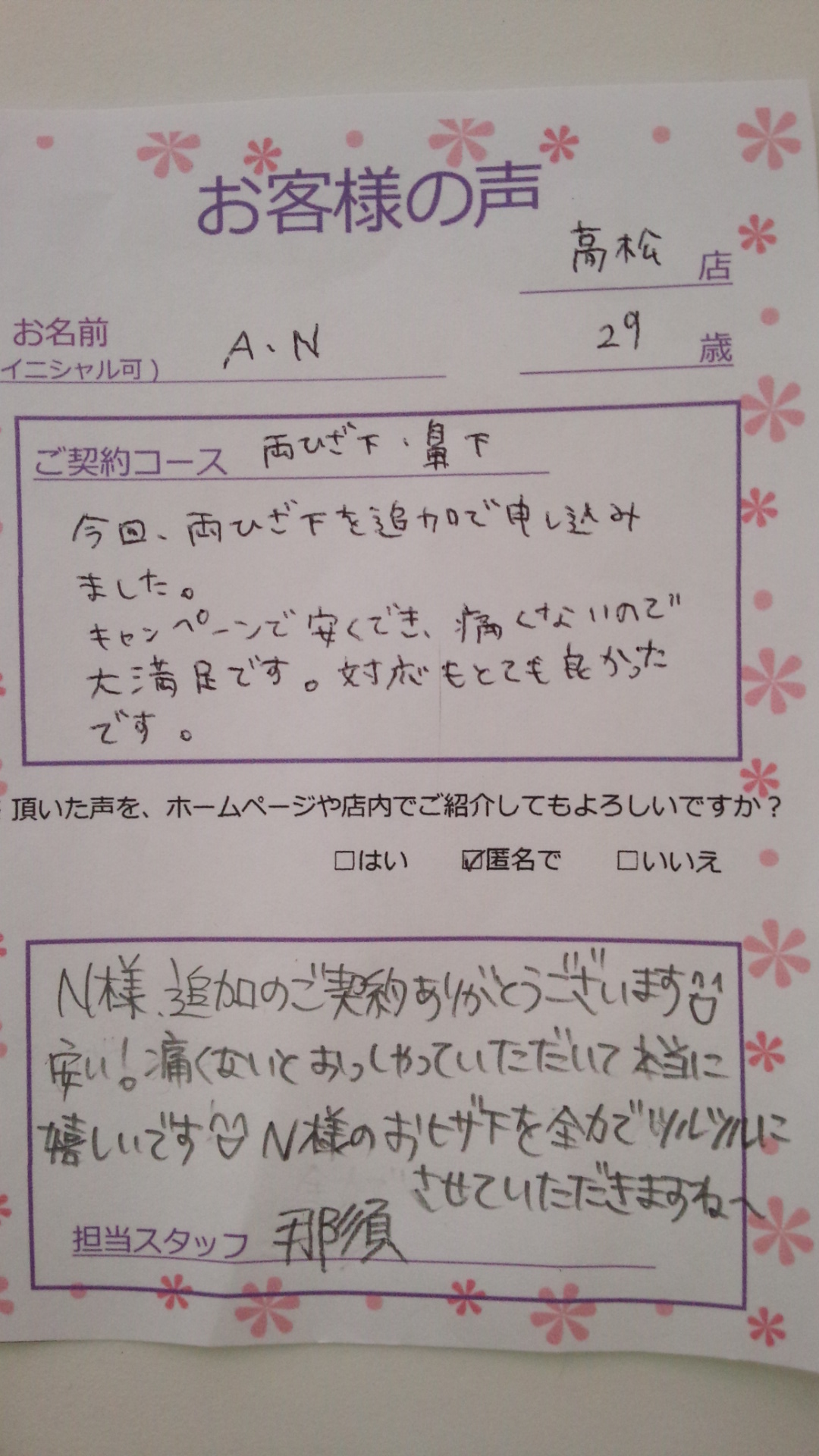キャンペーンで安くでき、痛くないので大満足です。対応もとても良かったです。