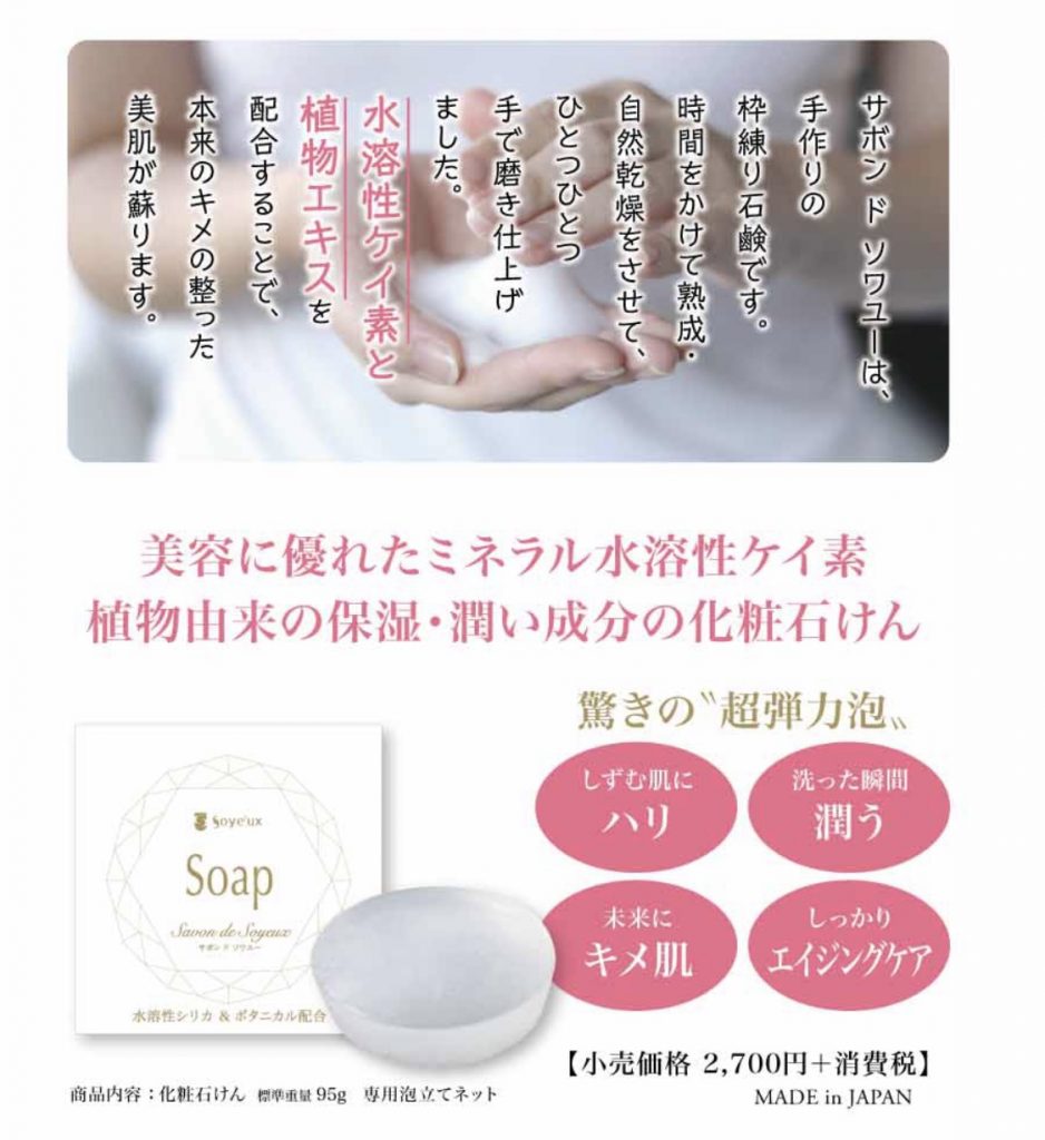 そんな方にリンリン新豊田駅店では、今話題のケイ素が含有された石鹸のサボンドソワユーをオススメしています💖