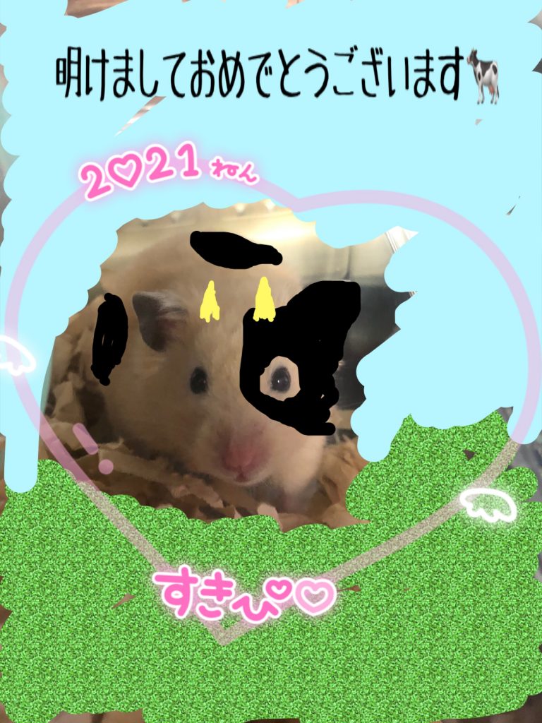 こちらは、飼ってるハムスターのキン君を牛に落書きしてみました❤️