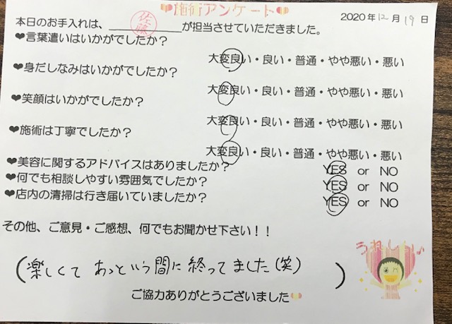 親子3代で通って頂き、いつもみんなでワイワイと楽しそうにご来店して頂くのがすごく嬉しいです。また楽しいお話をしましょう♡