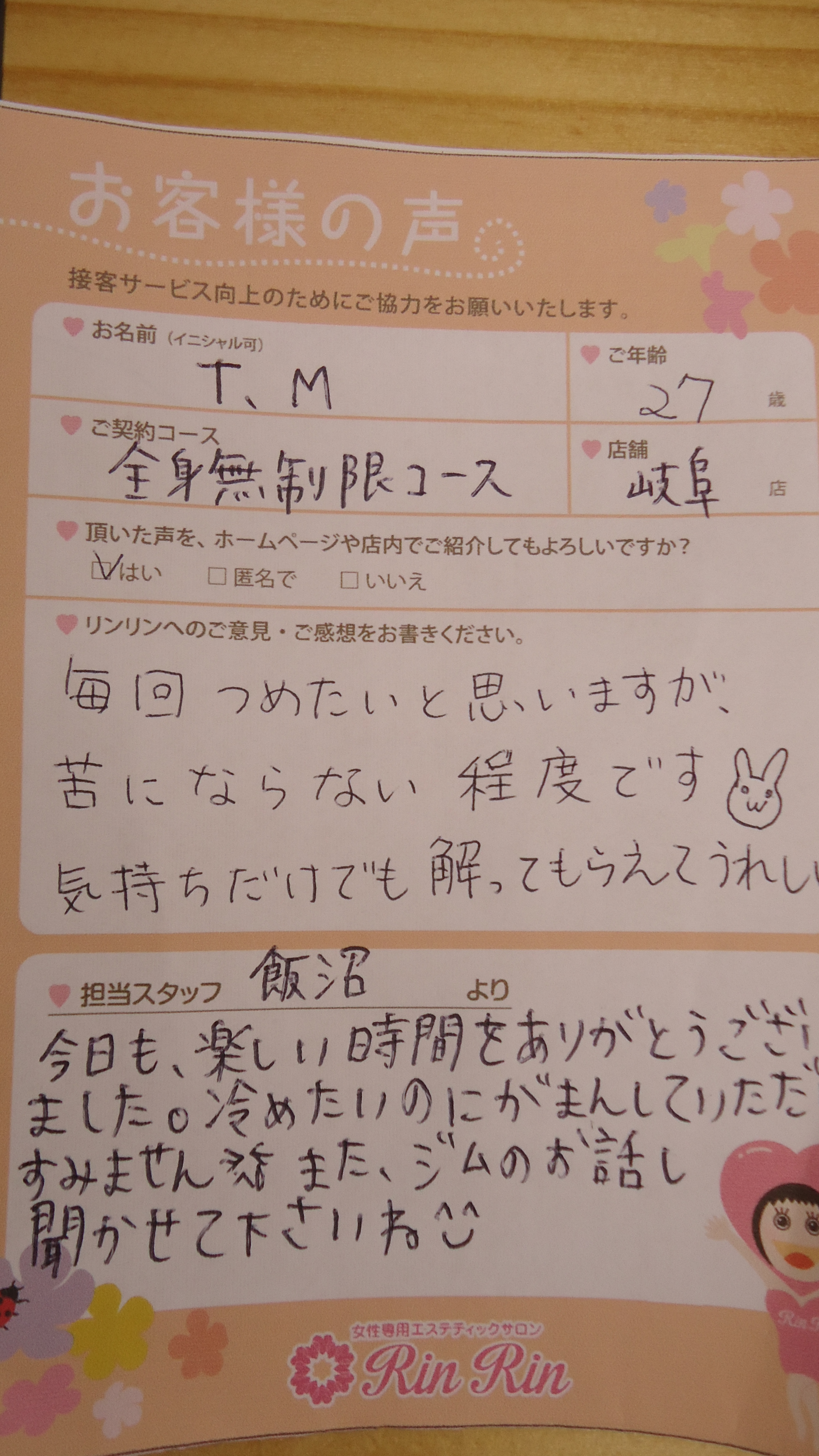 今日も楽しいお時間をありがとうございました。 冷たいのに我慢して頂きありがとうございます。 またジムのお話し聞かせて下さいね(^^)