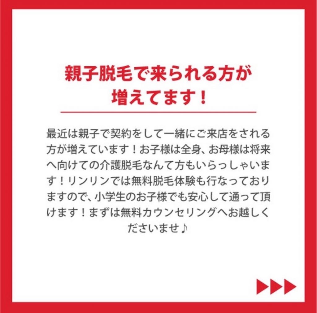 最近はお母様と一緒に小学生のお子様も脱毛される方が増えております⭐️