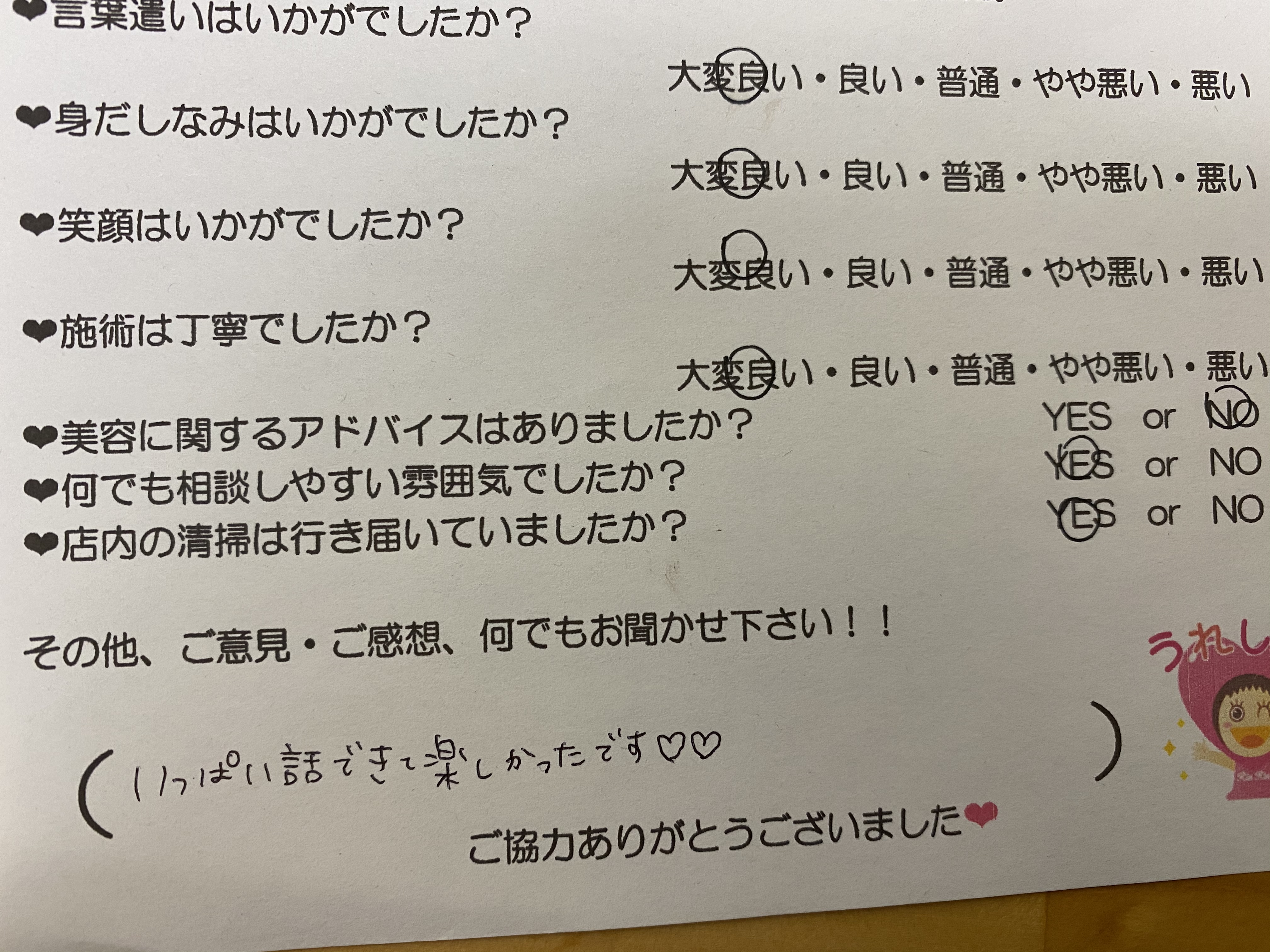 いつも丁寧にして下さり、ありがとうございます。
