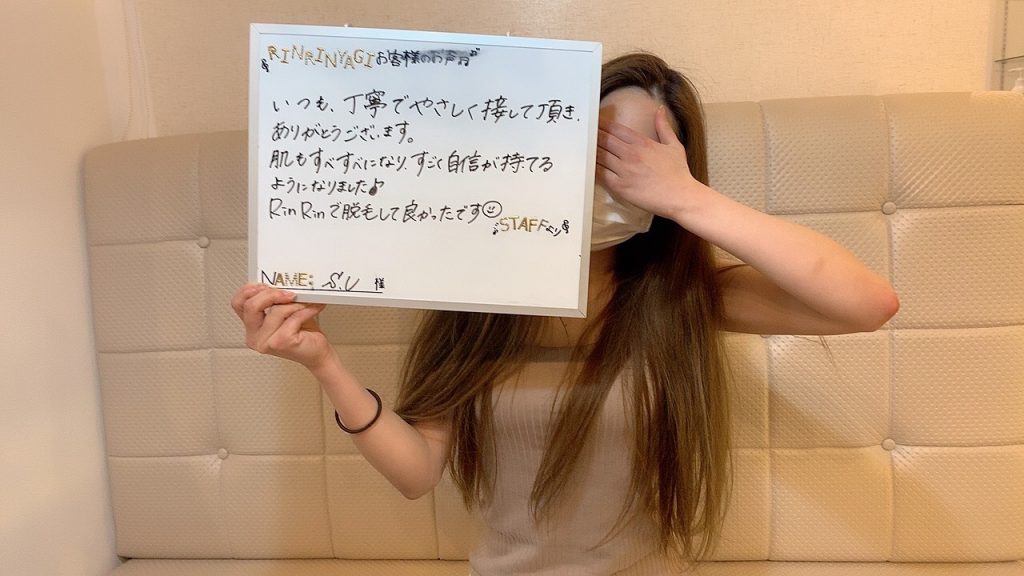 いつも丁寧で優しく接して頂きありがとうございます。肌もスベスベになりすごく自身が持てる様になりました。RINRINで脱毛して良かったです♥