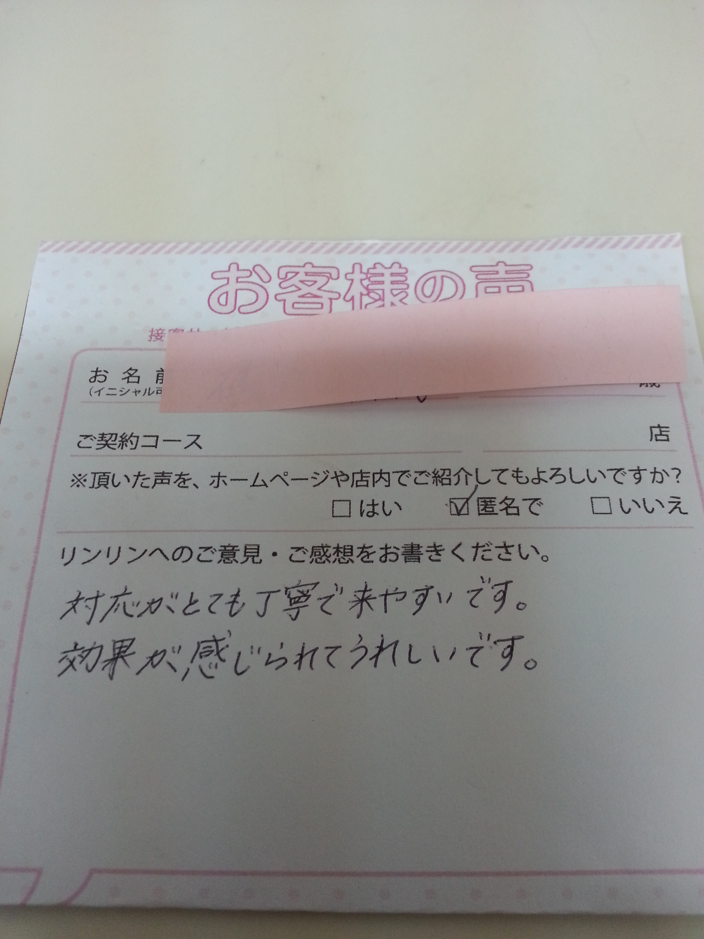 スピーディだし、よくエステ等である化粧品の販売も控えめですし、いいと思ってます。