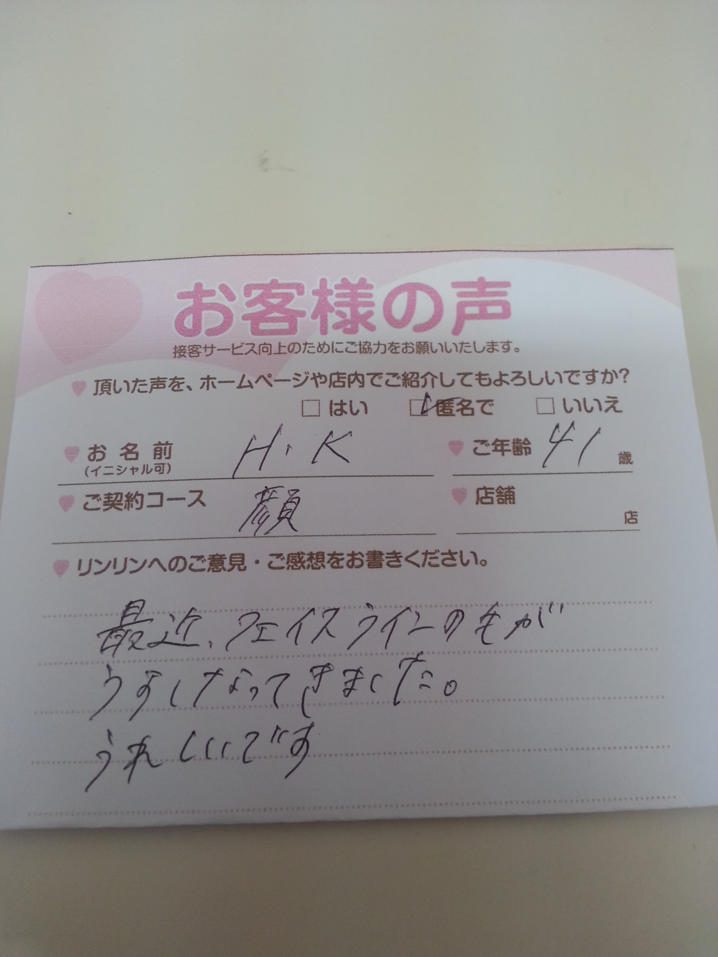 お店の雰囲気も良くて通いやすいです。これからもよろしくおねがいします。