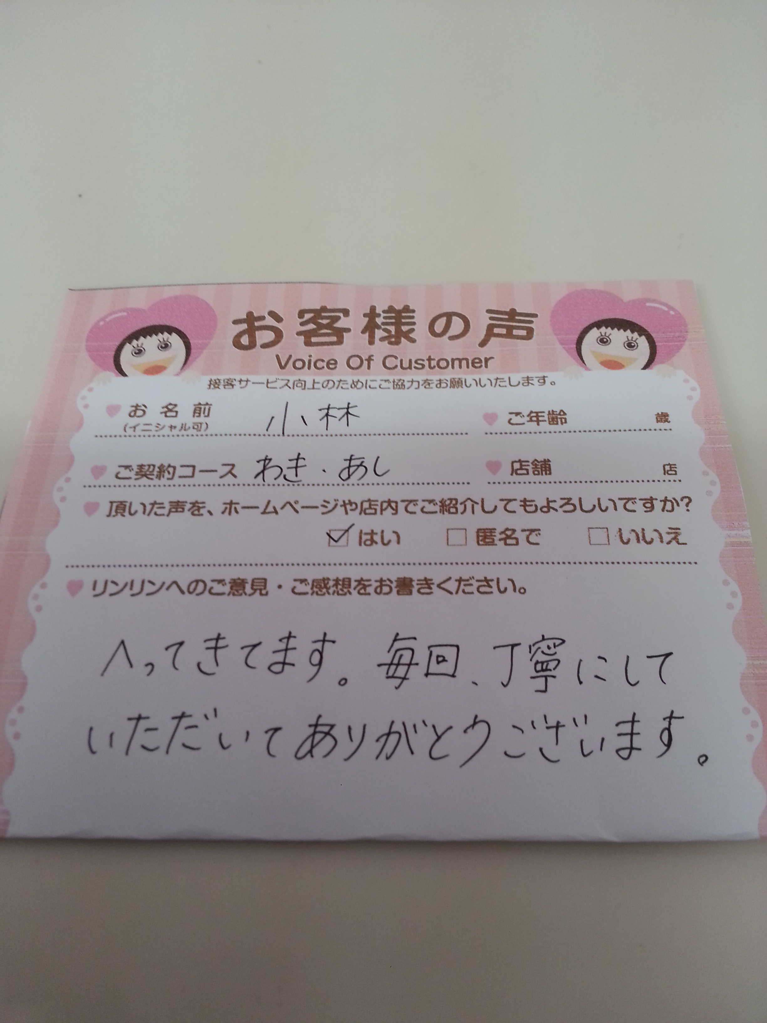 リンリンは、脱毛のお店で3店目です。