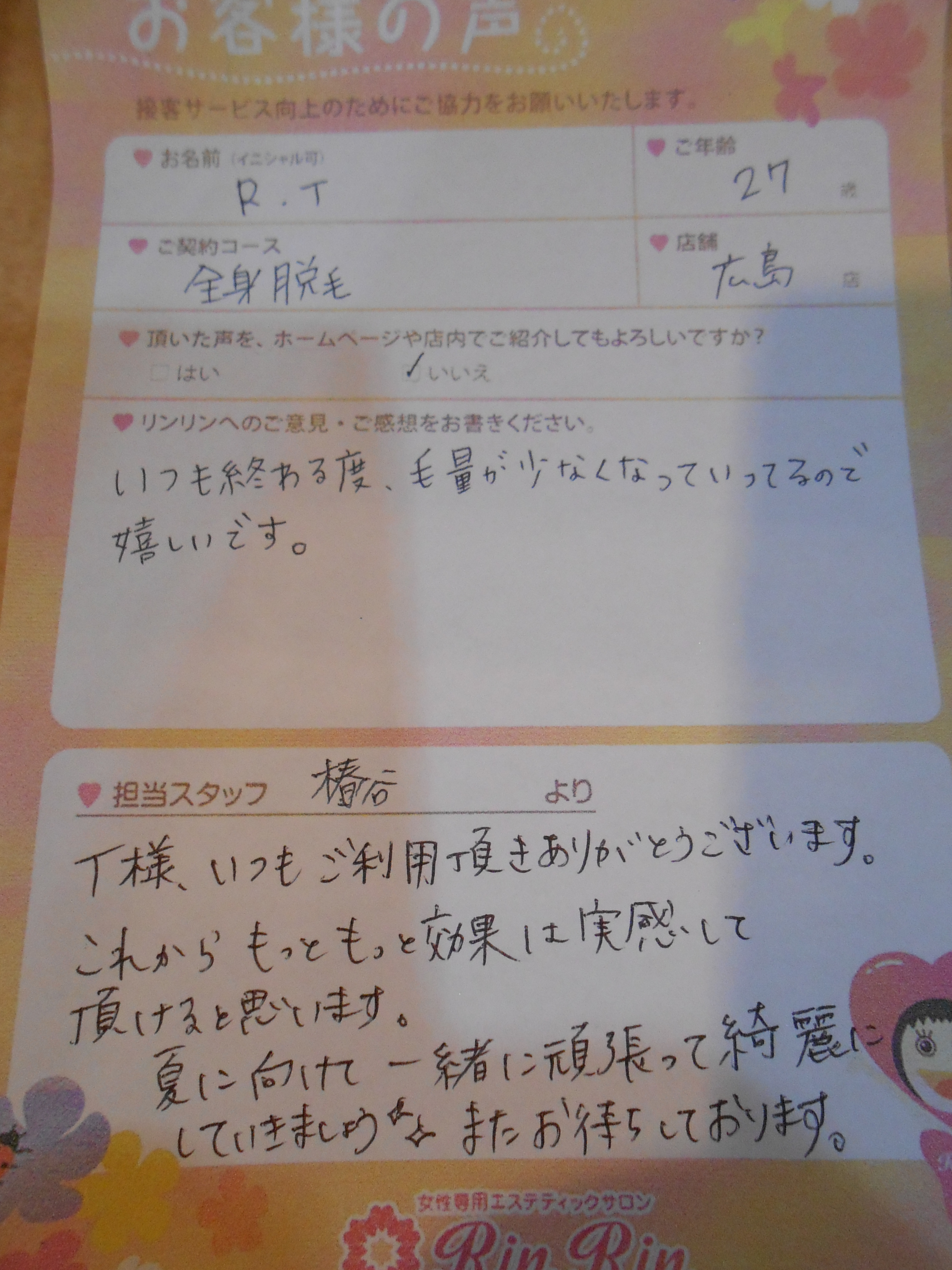 これからももっと綺麗になるように通わせて頂きますので宜しくお願いします!