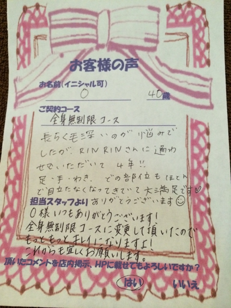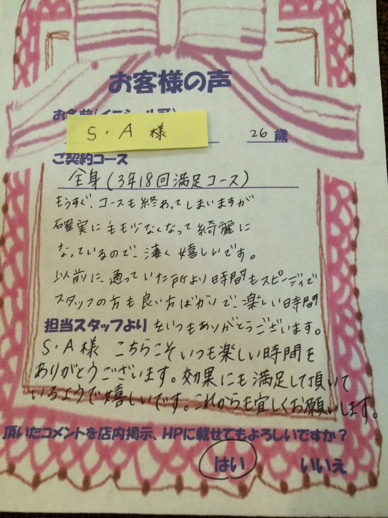 ス小袖も処理が少なくなっただけでも嬉しいですよね~! K様を全力サポートしていきますので、 これからもよろしくお願い致します♪